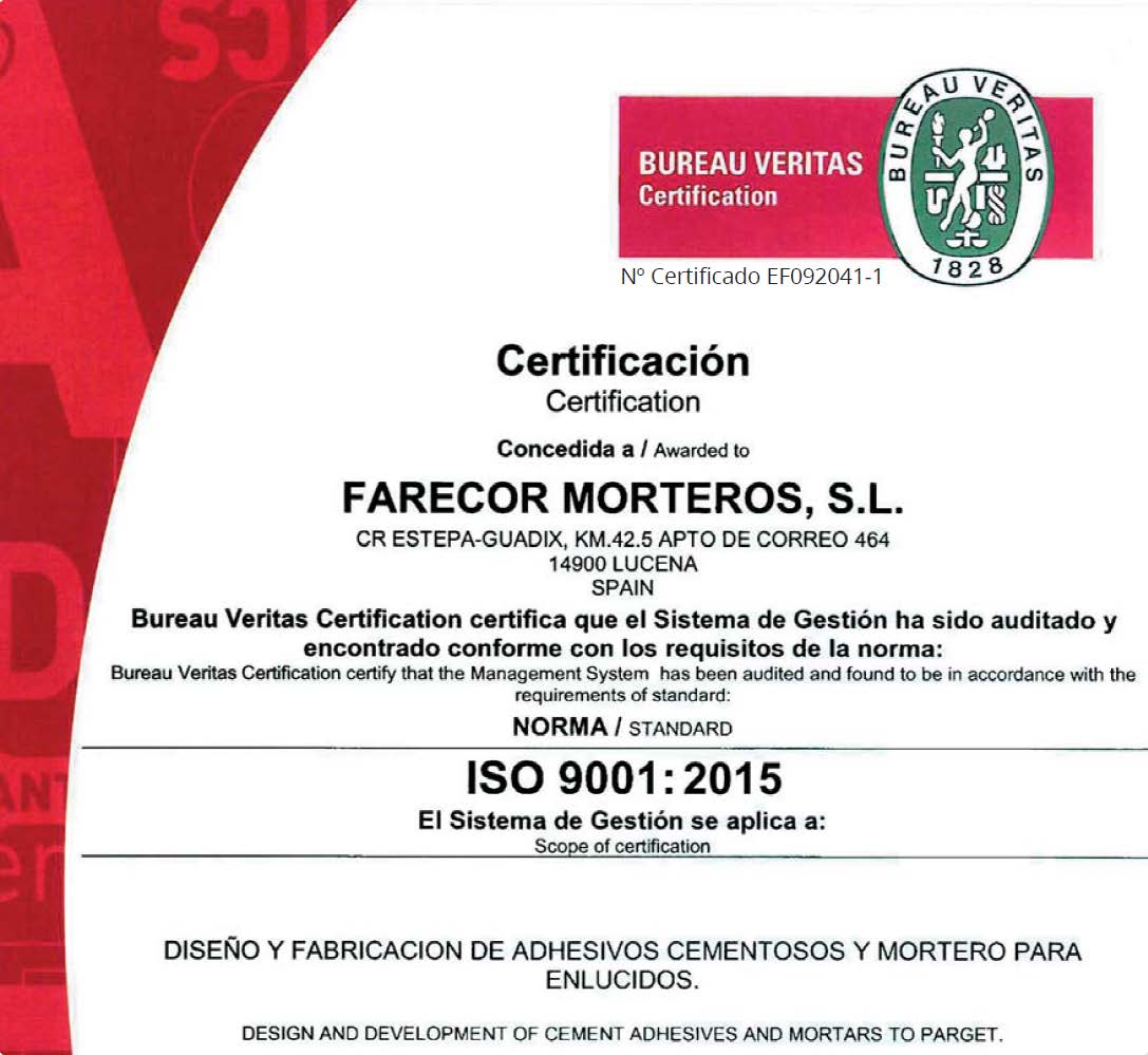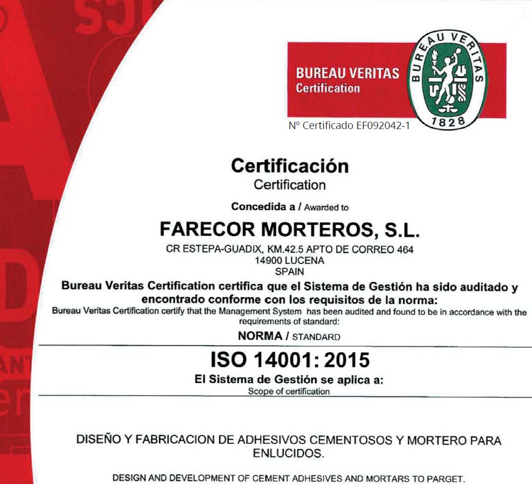 La dirección de FARECOR MORTEROS S.L., define y participa de la Política de la Calidad y Medio Ambiente de su empresa que, teniendo como objetivos básicos la satisfacción plena de nuestros clientes y la protección y conservación del medio ambiente como medios para asegurar la rentabilidad y continuidad de la Empresa, apuesta por la consecución de los suiguente Objetivos Generales: